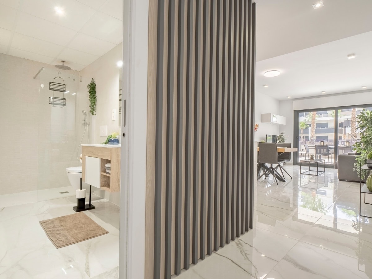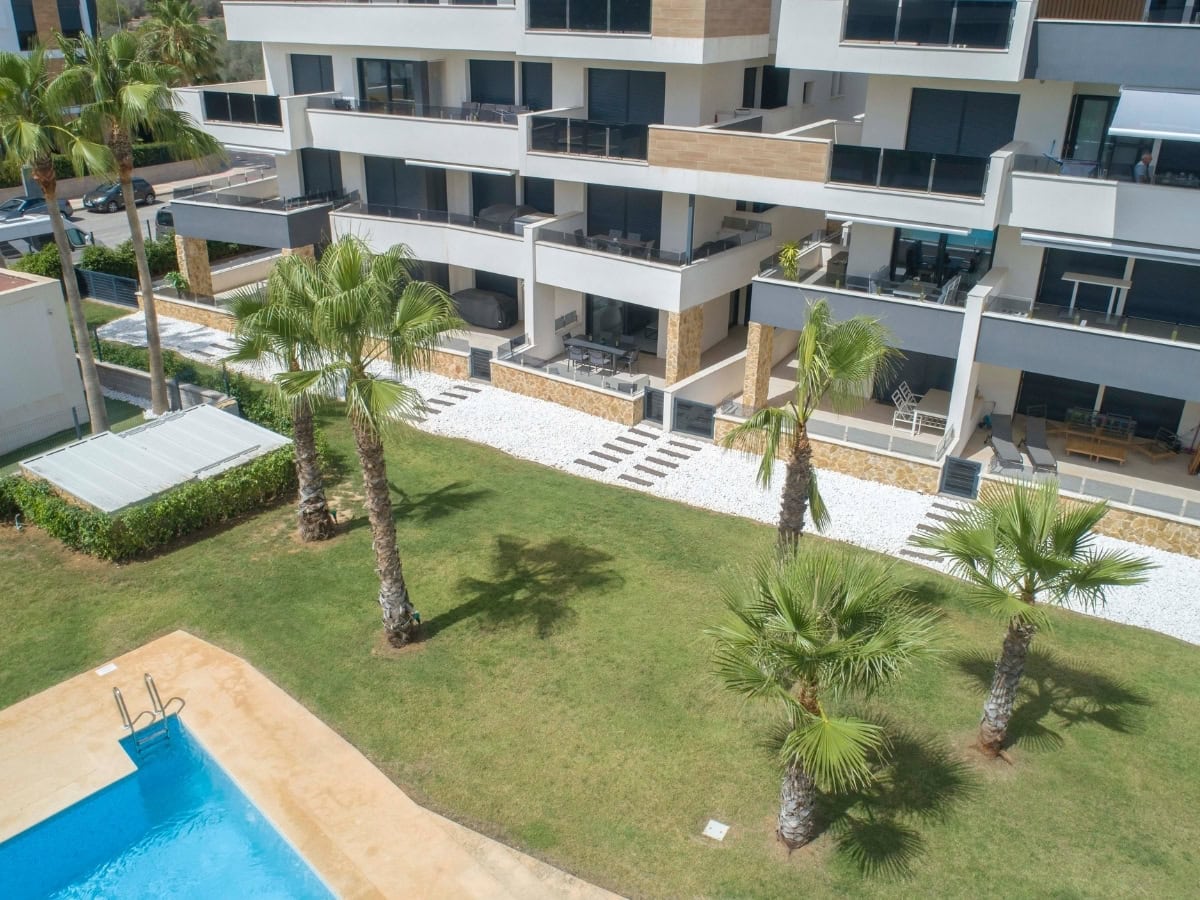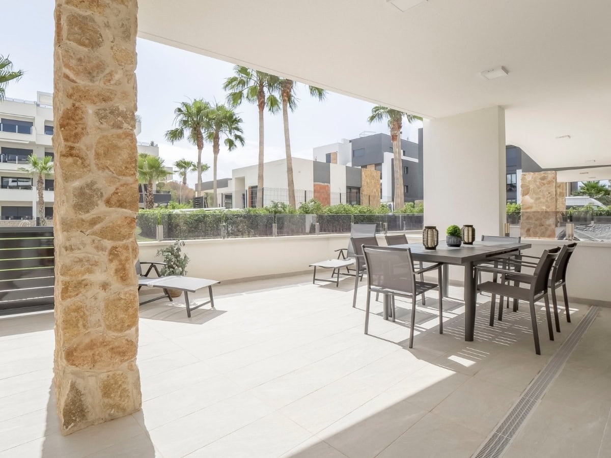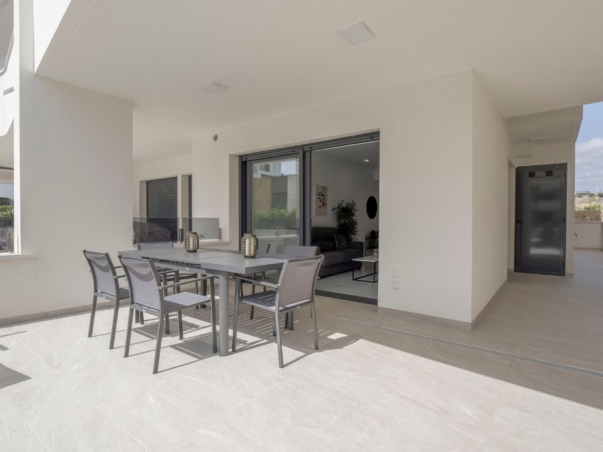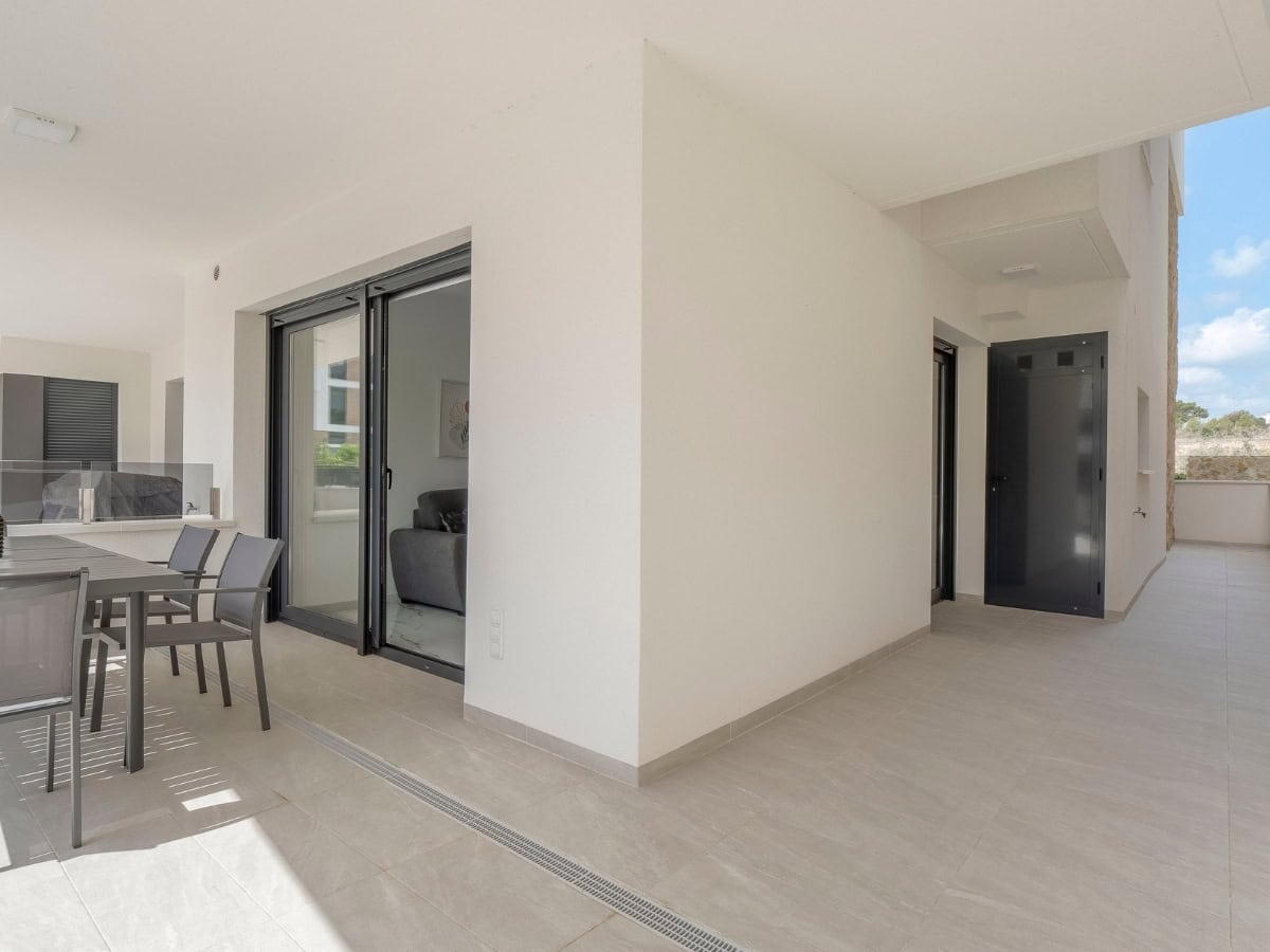 Een modern appartement op de begane grond met een privéterras, resortachtige voorzieningen en de perfecte locatie dicht bij het strand.