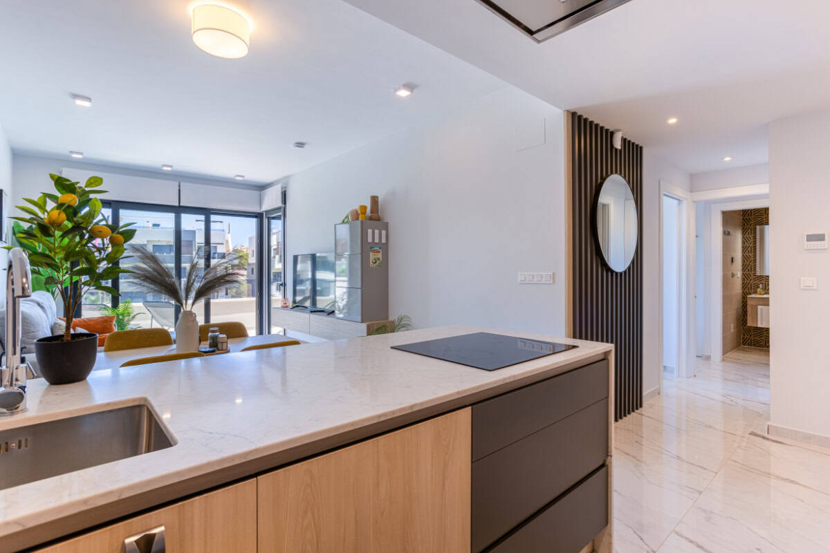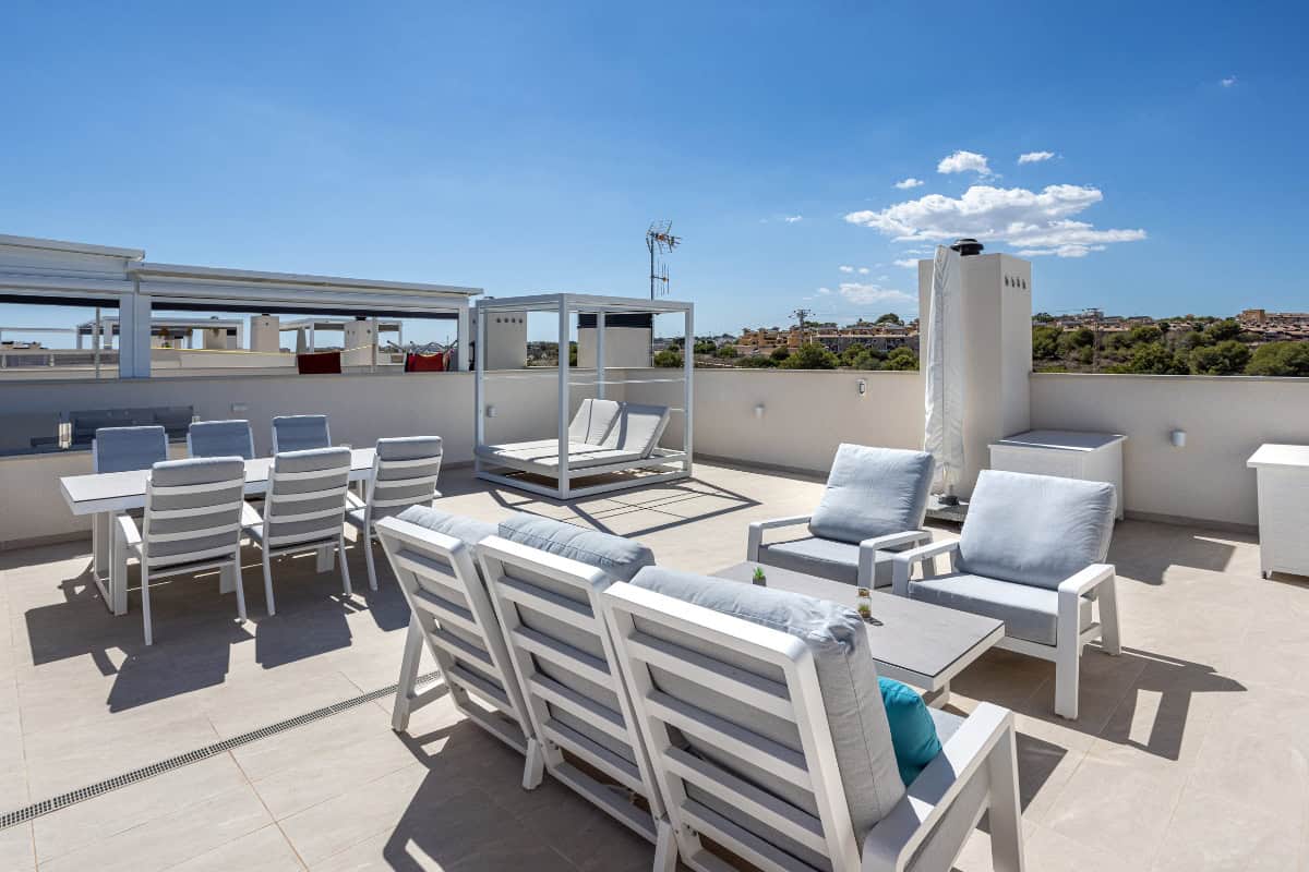 Een modern penthouse met een privé solarium op het dak, toegang tot het zwembad en de perfecte locatie om van Costa Blanca South te genieten.