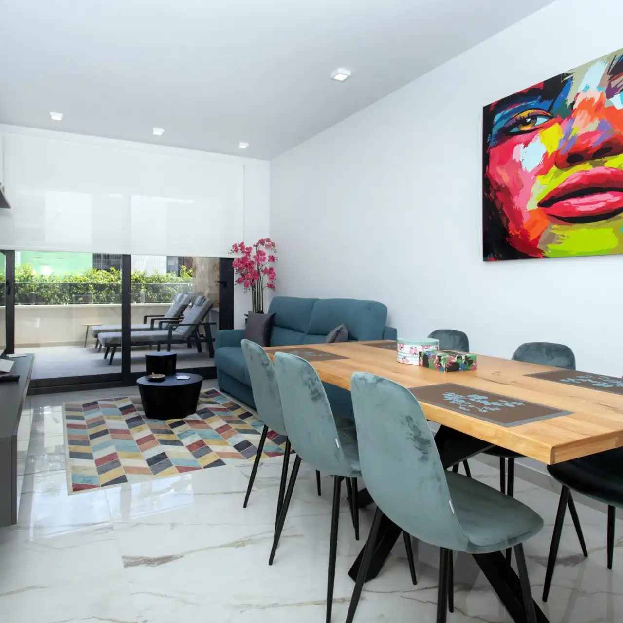 Casa Stefano is a welcoming 2-bedroom, 2-bathroom apartment in the popular Amanecer IX residence, right next to Casa Costa Blanca Zuid. With its private ground-floor terrace, stylish modern interiors, and access to the communal pool, gym, and landscaped gardens, it’s the ideal base for enjoying the Mediterranean lifestyle in Orihuela Costa.